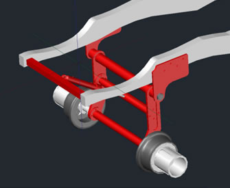 Para ello se diseñó un tren de tracción que funciona mediante un cilindro que se acopla con el neumático trasero y mediante la fricción entre ambos impulsa una llanta ferroviaria.
